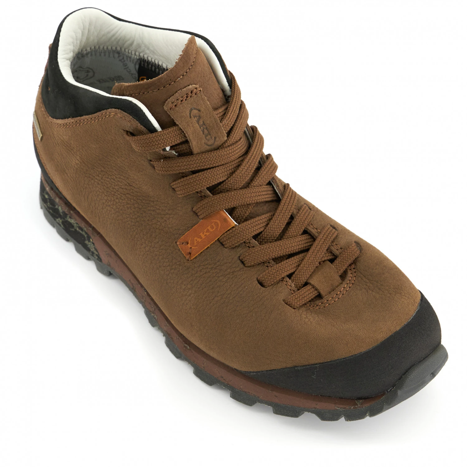 If you like to spend your free time in nature, you will be happy with the Bellamont 3 Nubuck Mid GTX trainers by AKU! The boots will impress you with their durability, provided by the abrasion-resistant leather upper. They are also weatherproof and breathable, as they feature a GORE-TEX membrane. The perfect partner for leisure activities in nature, whatever the weather.