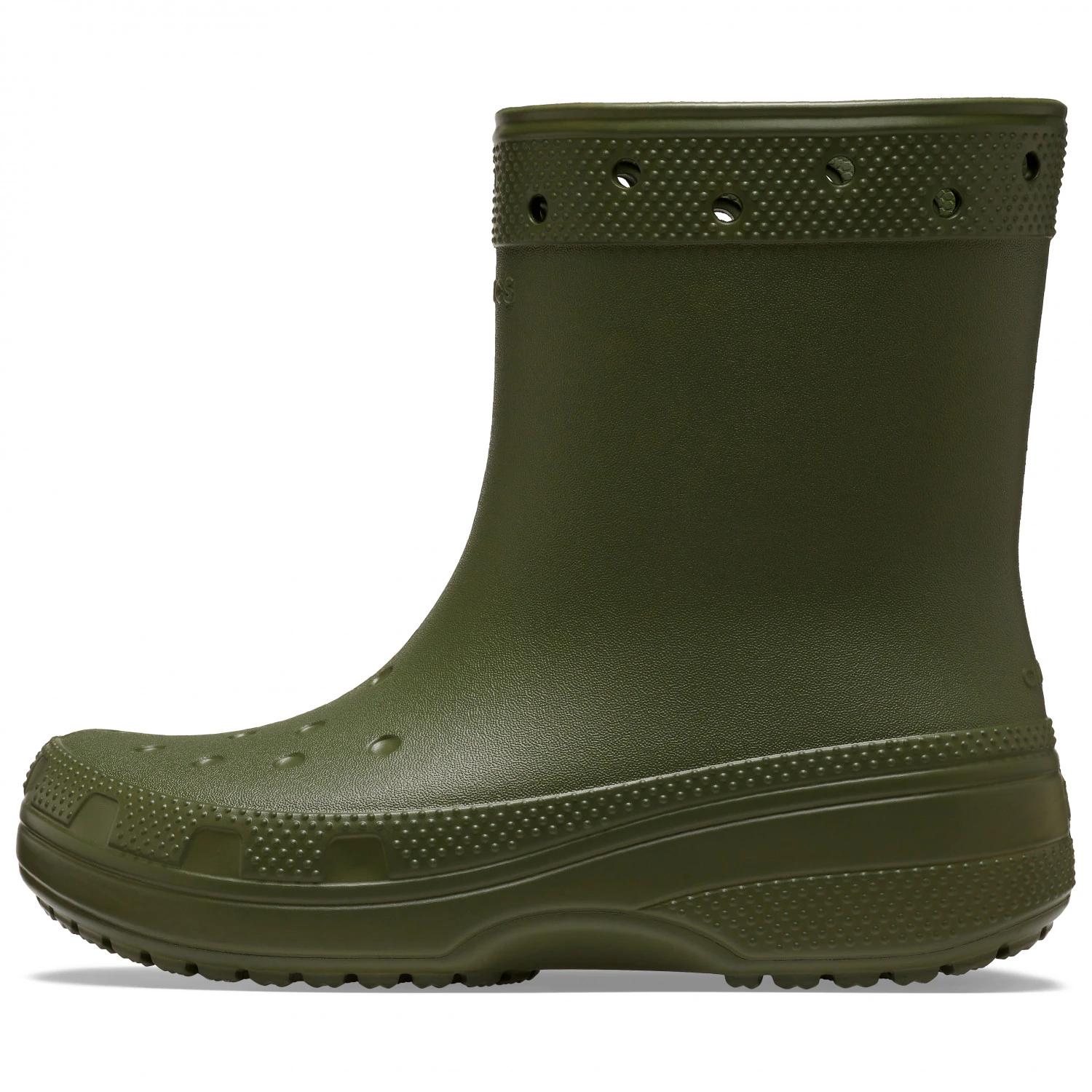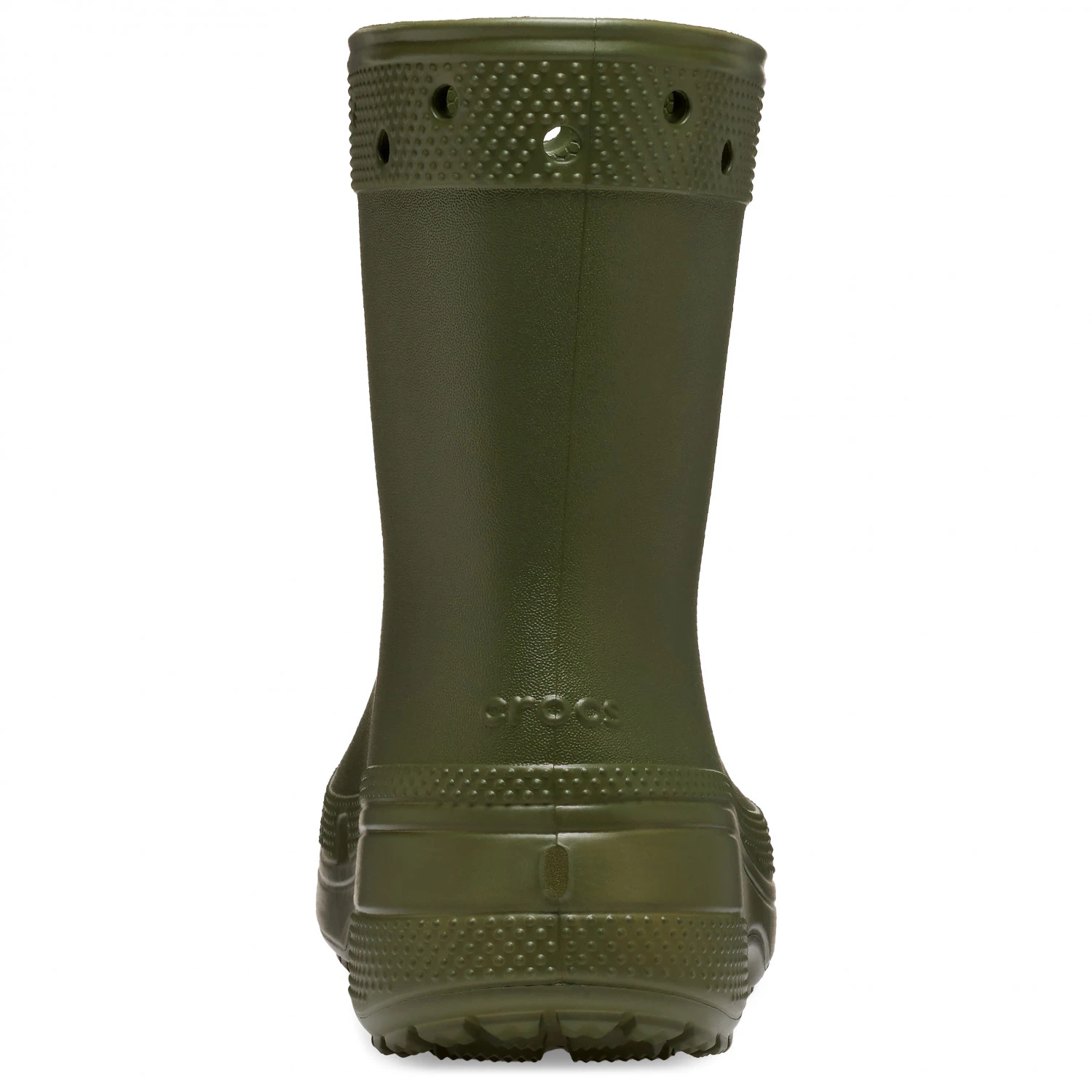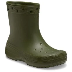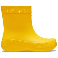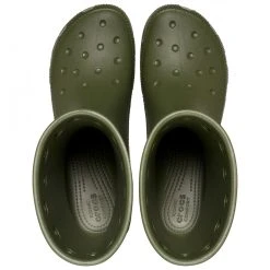 Their ergonomic shape, the pattern on the toe cap and the holes in the collar give these wellies that typical Crocs design. With these wellington boots, youâll see that they can be fashionable as well as functional. In addition, the upper is waterproof, durable, easy to clean and quick-drying. Plus, the outsole offers decent grip on wet surfaces. Like all Crocs shoes, the Classic Rain Boot boasts an amazingly low weight.