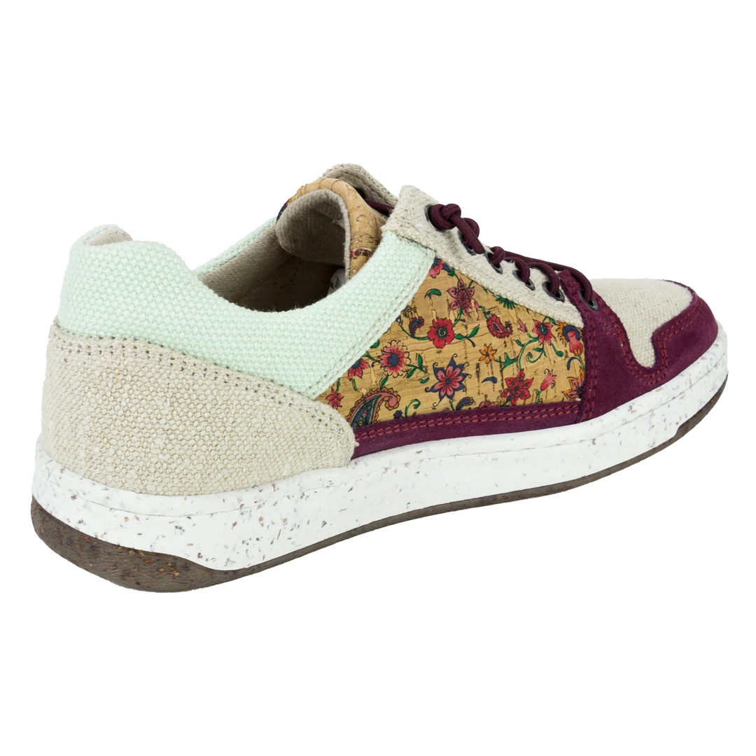 The upper consists of a cotton material blend that is robust and durable. The shoes are water-repellent and reliably tear-resistant. The soft lining makes them very comfortable to wear. The temperature is pleasantly regulated so that the feet neither sweat nor freeze. The development of unpleasant odours is also prevented. The insole made of recycled cork is also especially comfortable, with a low weight and feeling soft to wear. The rubber outsole guarantees good traction in any terrain. Leather reinforcements on the toes enhance protection. The heel area is slightly rounded for a natural gait cycle. The casual elastic lacing allows you to slip into the shoes quickly. A capable partner casually activities!
