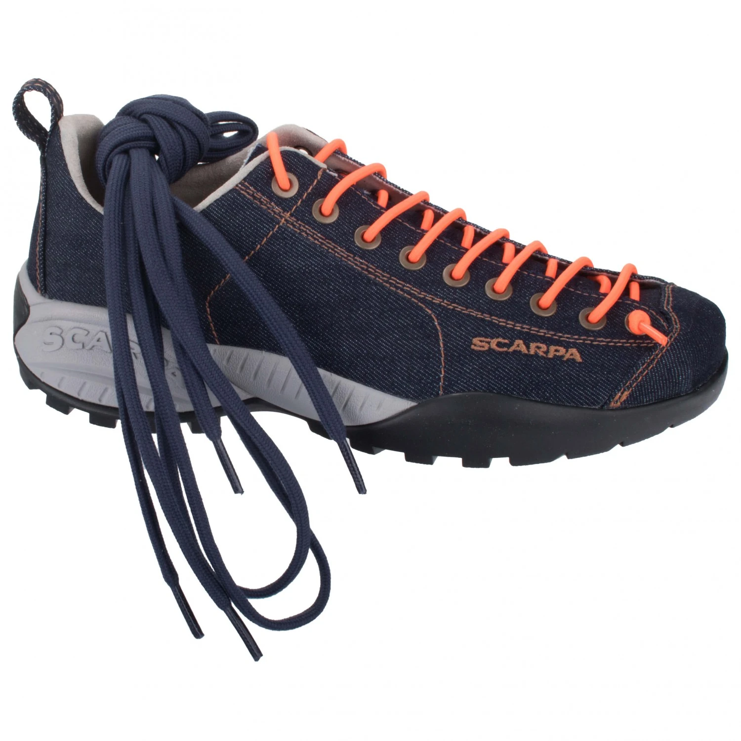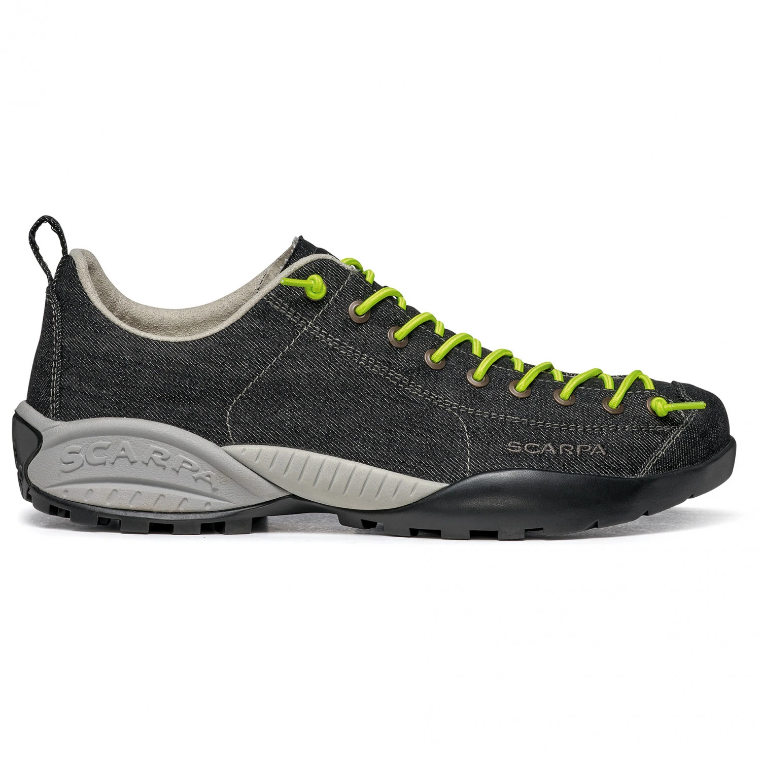 The Scarpa Mojito Denim shoes look great with their denim fabric. With these stylish shoes, you’re bound to turn some heads! A great feature is the lacing, which – in the traditional Scarpa style – extends all the way to the front, as it would on climbing shoes. In addition, the shoes are equipped with a Vibram sole, which always provides great traction. With the Scarpa Mojito Denim shoes, you’ll have a shoe reminiscent of Italian designer shoes that is perfect for every day or leisure wear!