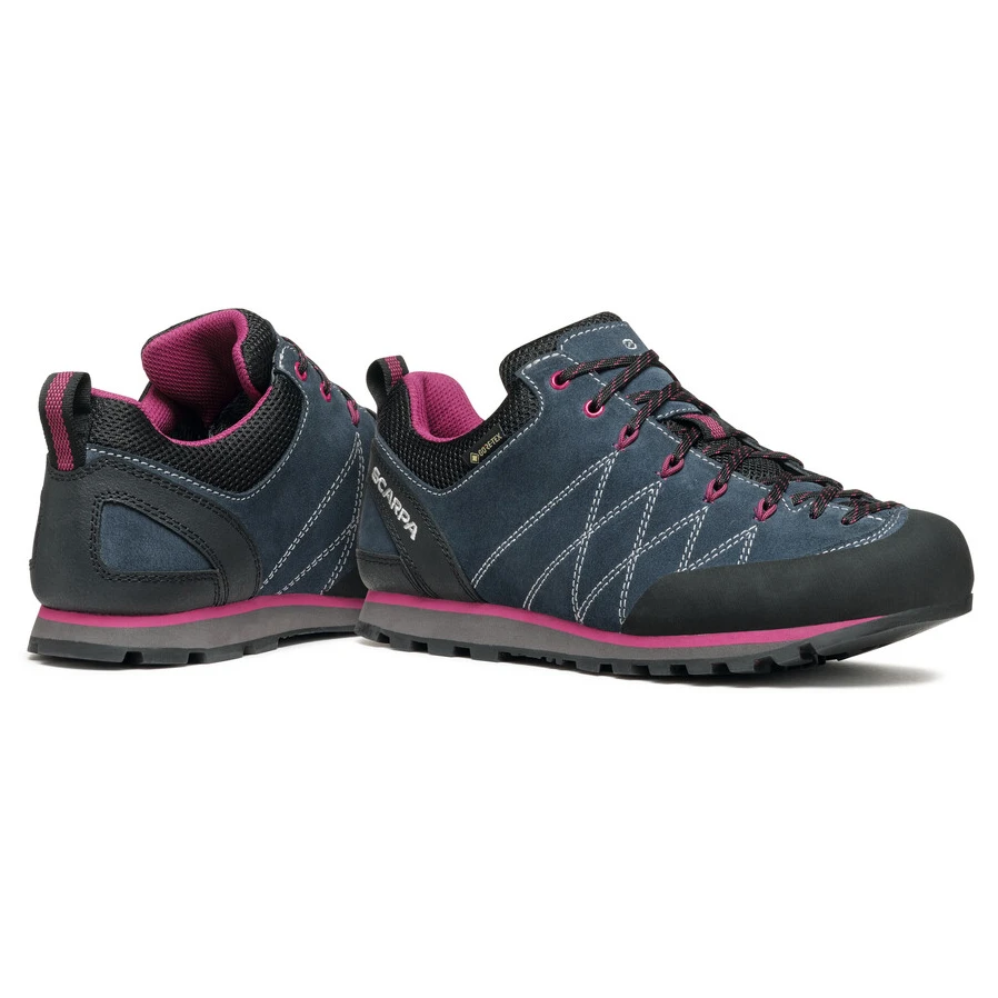 The sturdy Vibram Megagrip rubber outsole provides excellent traction on rough terrain, while the extended lacing system ensures a precise and secure fit. Plus, the shoes are equipped with a tough protective toe cap that offers protection from sharp stones and rock edges. Whether it’s an approach, via ferrata or hike, the Womenâs Crux GTX from Scarpa are up for all kinds of fun!